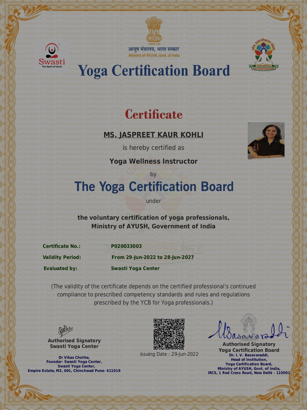 Yoga Wellness Instructor (Ayush Ministry, Govt. of India)